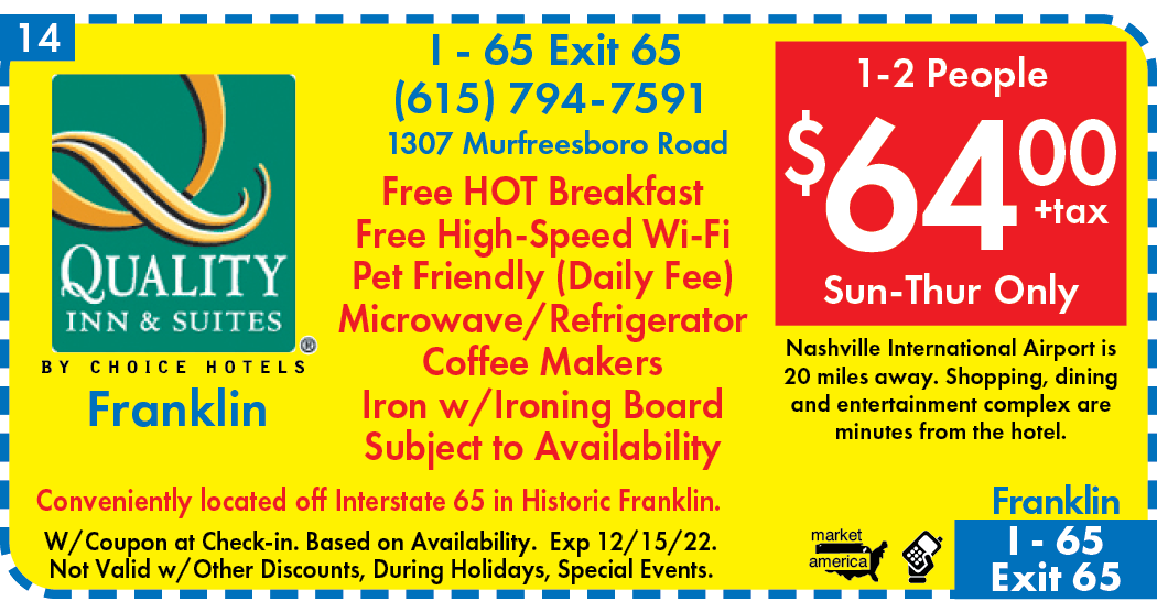 Quality Inn 1307 Murfreesboro Rd Franklin Tn 37064 Exit 65 Interstate I 65 In Tennessee Iexit